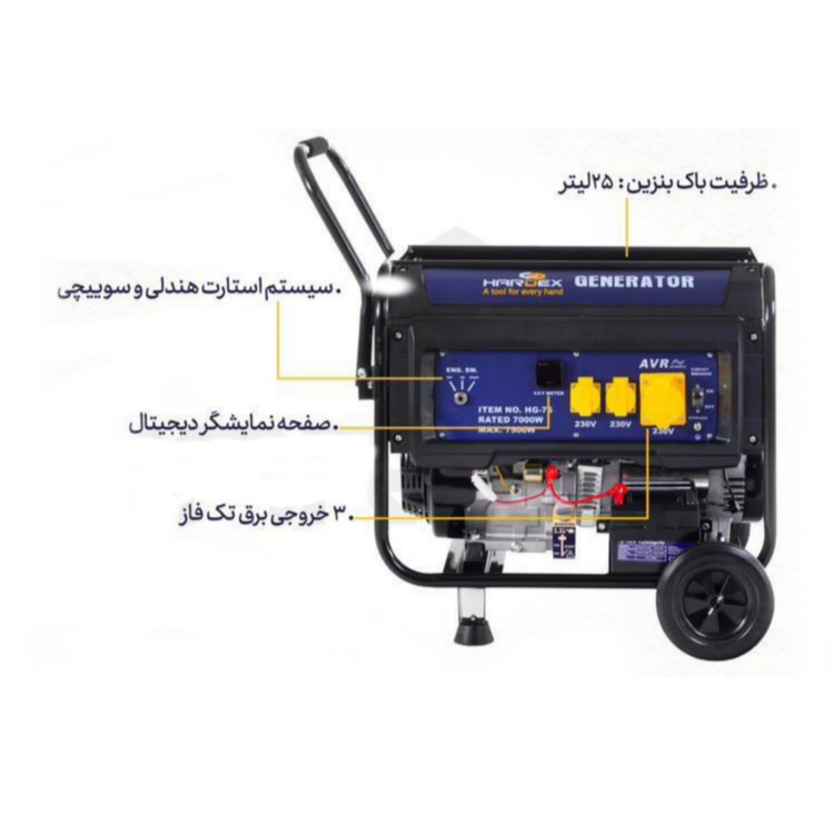 موتور برق هاردکس مدل HG-65 یک ژنراتور پرقدرت و بادوام است که با توان خروجی ۶.۵ کیلووات، انتخابی ایدهآل برای تأمین برق در پروژههای ساختمانی، کارگاهها، باغها، ویلاها و مصارف اضطراری خانگی به شمار میرود. این دستگاه با بهرهگیری از موتور بنزینی چهارزمانه و سیستم تثبیت ولتاژ (AVR)، برق پایدار و ایمنی را برای تجهیزات مختلف فراهم میکند.