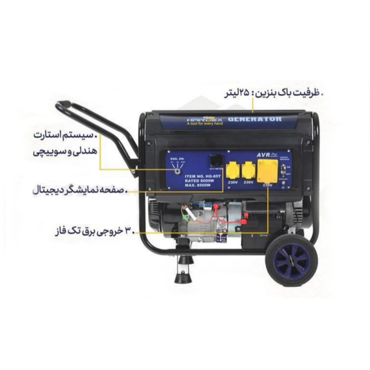 موتور برق هاردکس مدل HG-85T یک ژنراتور قدرتمند و همهکاره است که با توان خروجی ۸.۵ کیلووات و قابلیت کارکرد با سه نوع سوخت: بنزین، گازوئیل و گاز شهری/کپسولی، انعطافپذیری و صرفهجویی بیشتری را برای کاربران فراهم میکند. این دستگاه انتخابی ایدهآل برای کارگاهها، پروژههای ساختمانی، باغها، ویلاها و همچنین تأمین برق اضطراری خانگی به شمار میرود.